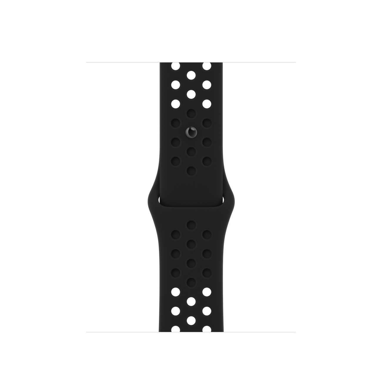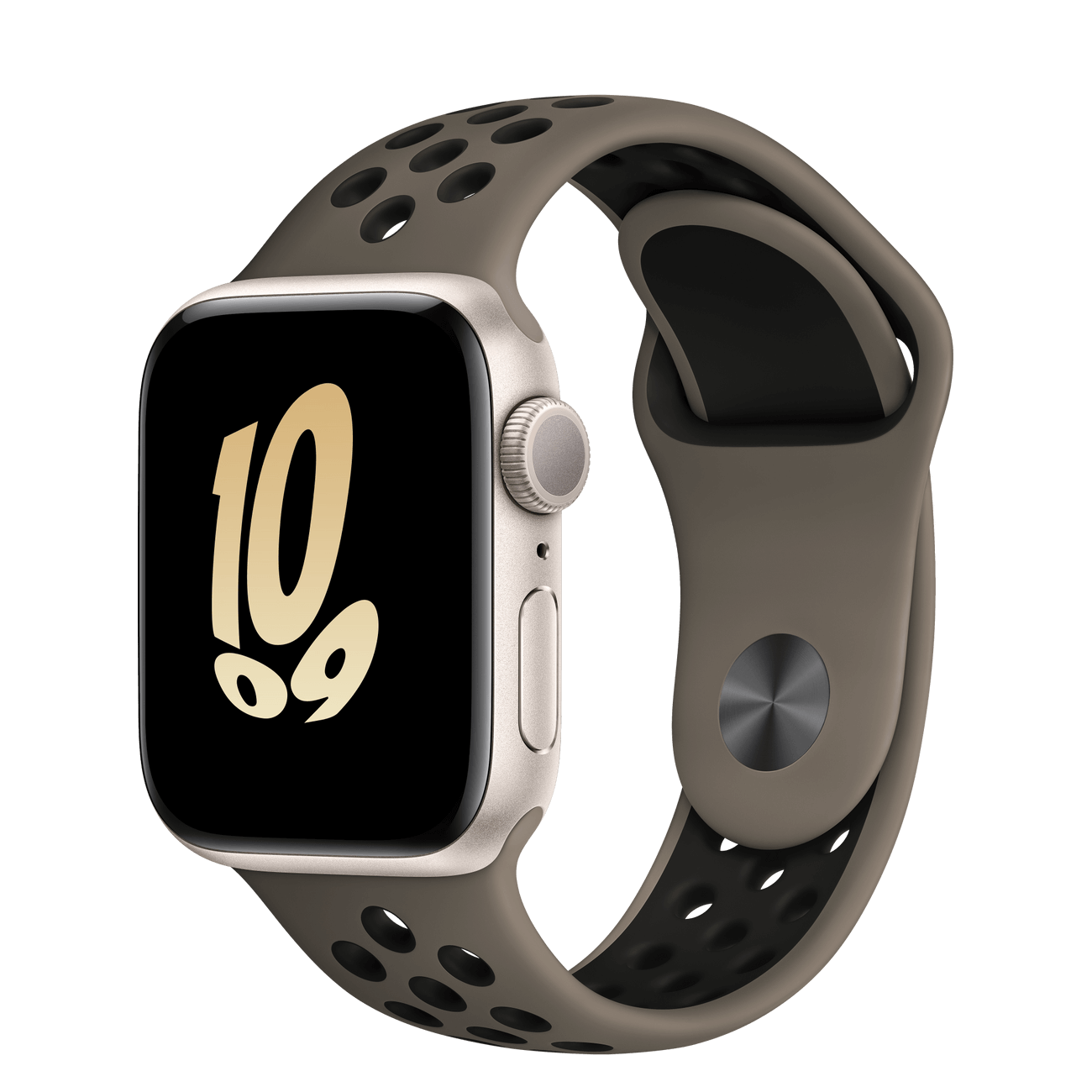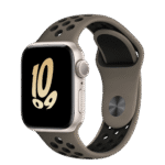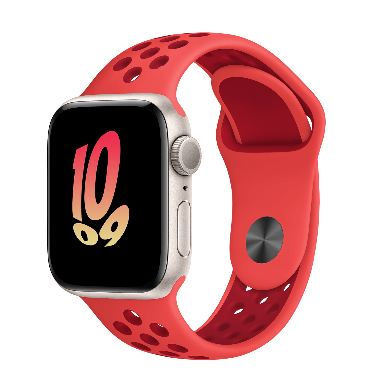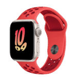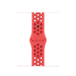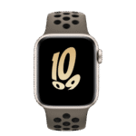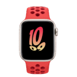 The aluminum case is lightweight and made from 100 percent recycled aerospace-grade alloy. The Nike Sport Band is made from a durable high-performance fluoroelastomer with compression-molded perforations for breathability.