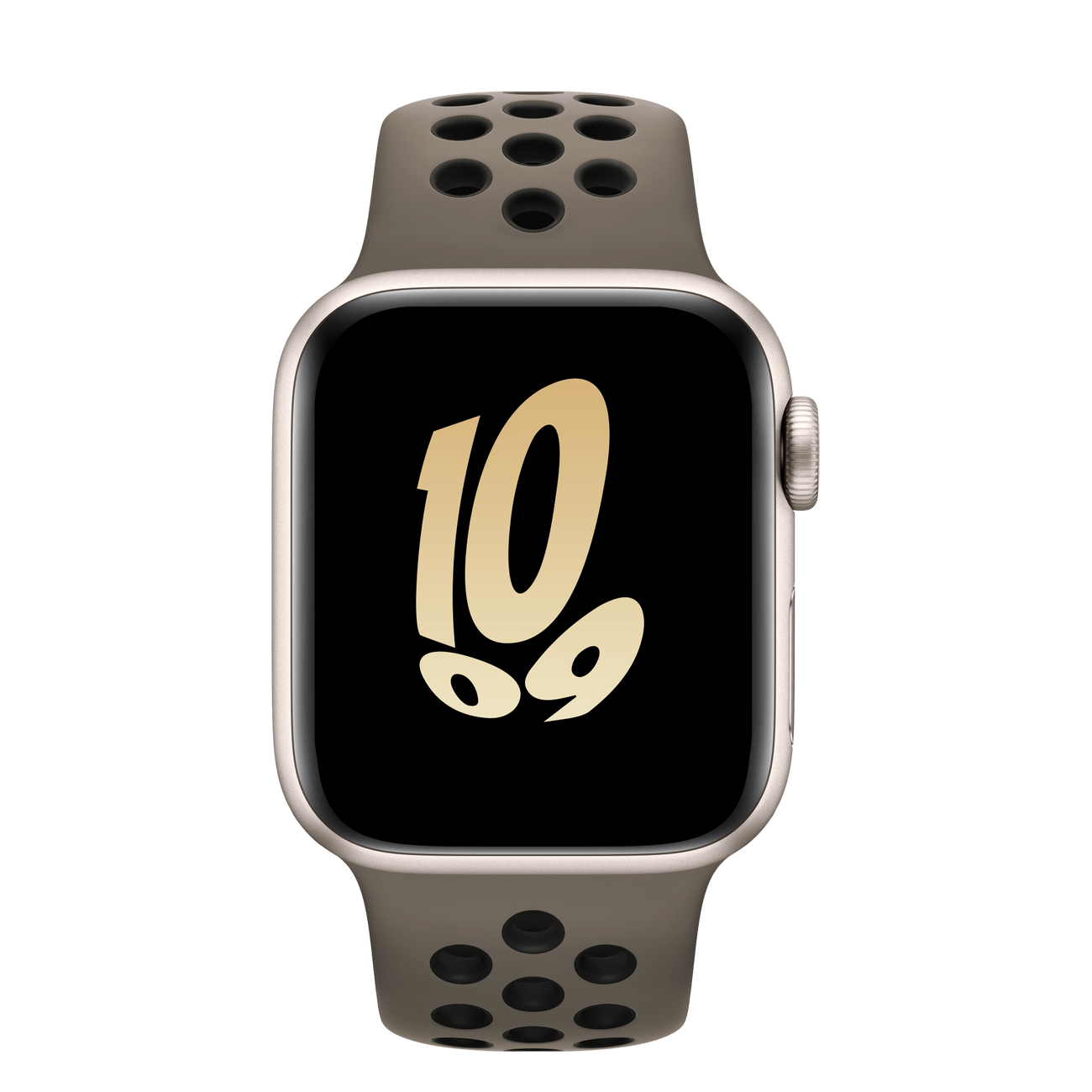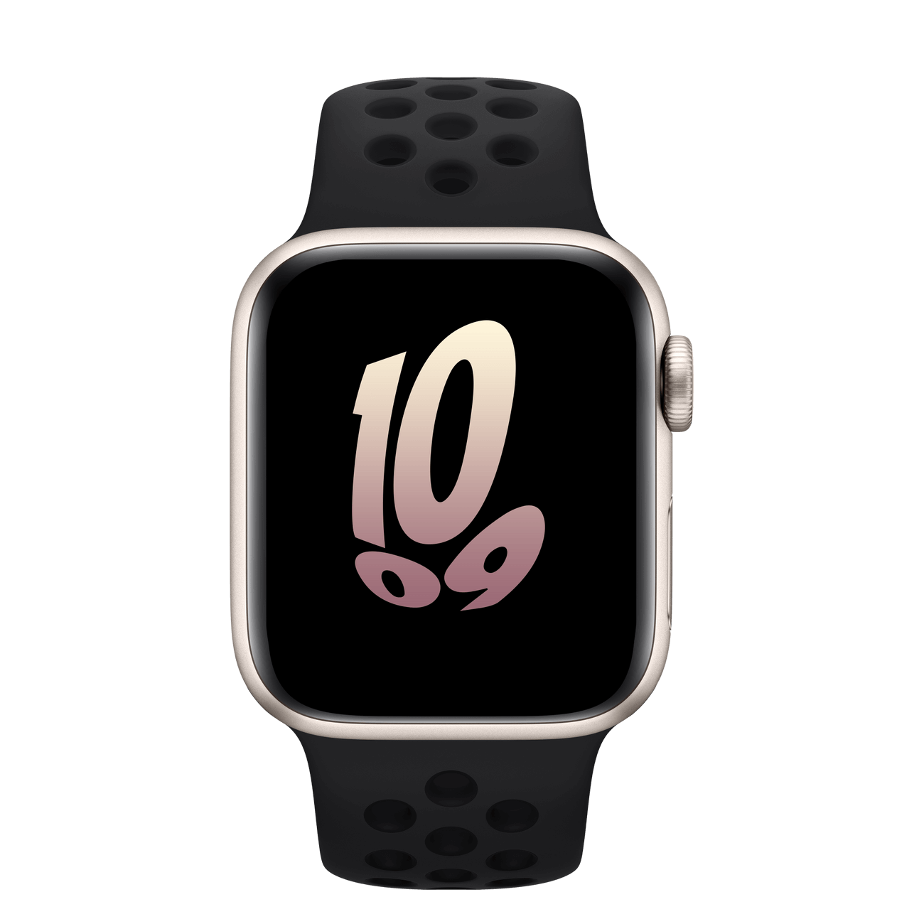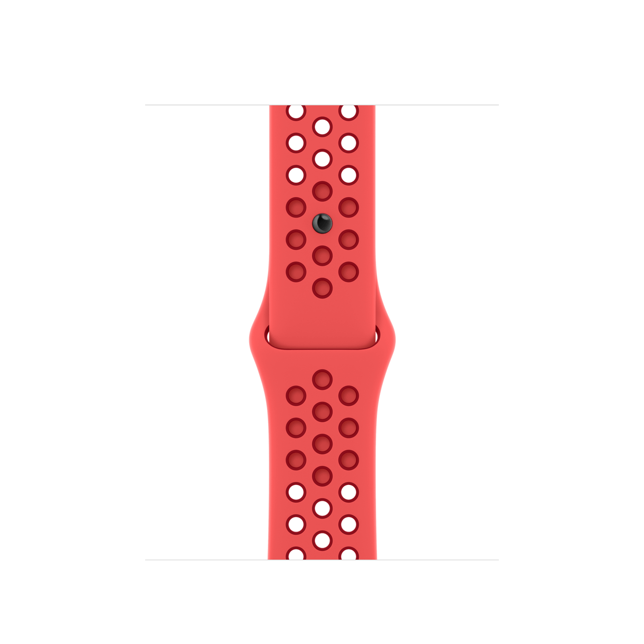The aluminum case is lightweight and made from 100 percent recycled aerospace-grade alloy. The Nike Sport Band is made from a durable high-performance fluoroelastomer with compression-molded perforations for breathability.