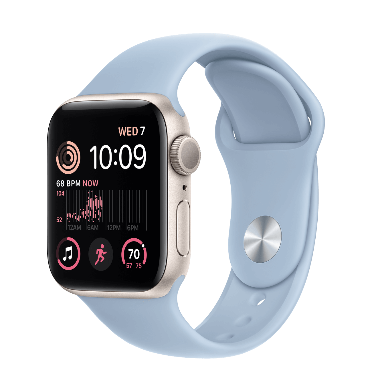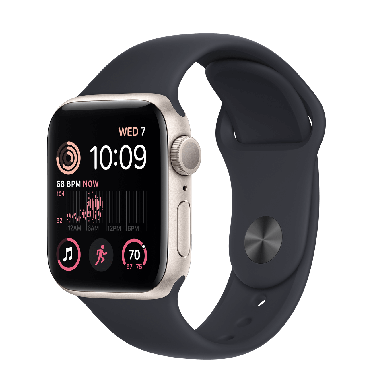 The aluminum case is lightweight and made from 100 percent recycled aerospace-grade alloy. The Sport Band is made from a durable yet surprisingly soft high-performance fluoroelastomer with an innovative pin-and-tuck closure.